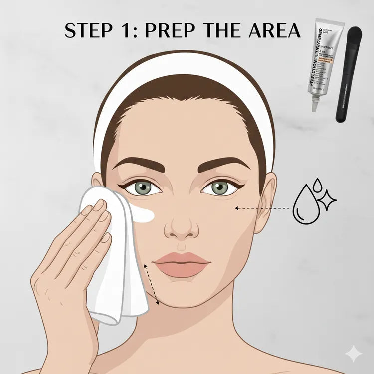 Start by cleansing with a non-oily cleanser. Avoid using eye cream if possible. If you prefer to use eye cream, allow the product to fully absorb and dry.